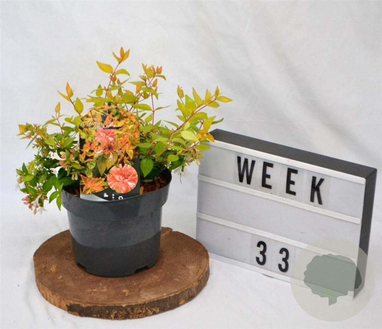 | Toelichting | Abelia is een prachtige heester met roze bloemen en groen blad. Deze plant bloeit van juni tot september en gedijt goed in zon en halfschaduw op lichte klei, neutrale of voedselrijke grond. Perfect voor een kleurrijke tuin! |