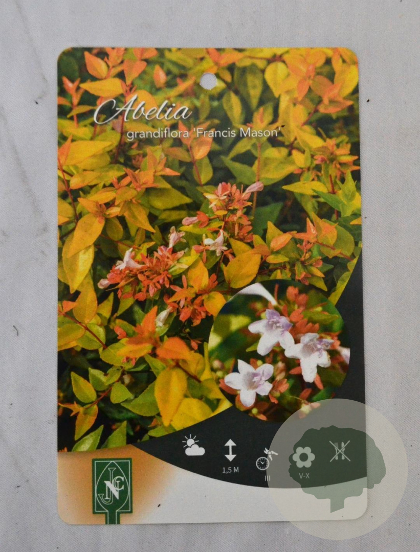 | Toelichting | Abelia is een prachtige heester met roze bloemen en groen blad. Deze plant bloeit van juni tot september en gedijt goed in zon en halfschaduw op lichte klei, neutrale of voedselrijke grond. Perfect voor een kleurrijke tuin! |