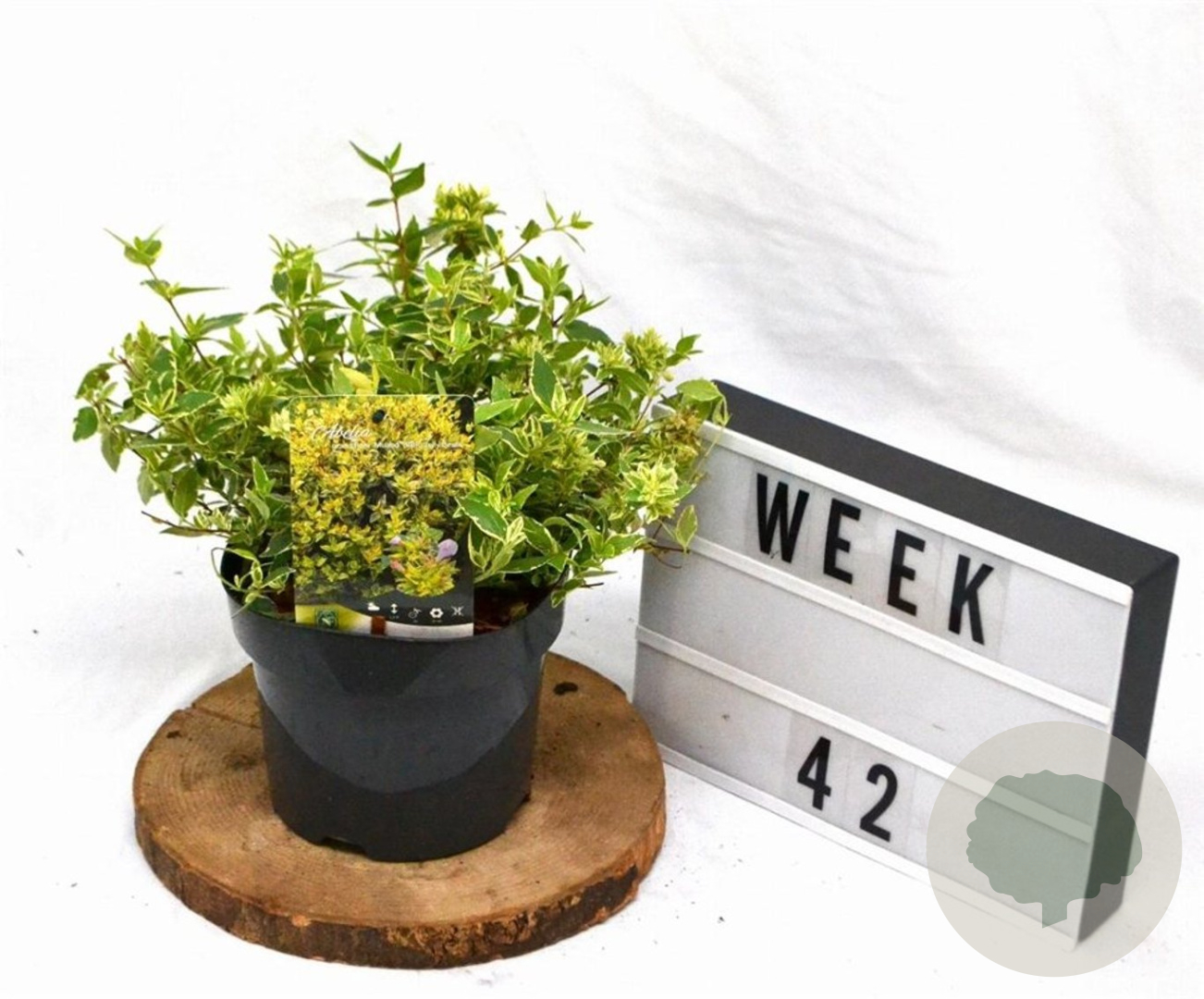 | Toelichting | Abelia is een prachtige, laagblijvende struik met roze bloemen en groen blad. Bloeit van juni tot september en gedijt goed in zon en halfschaduw op lichte klei en neutrale grond. Perfect voor borders en als bodembedekker. |