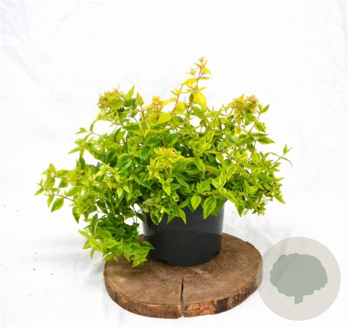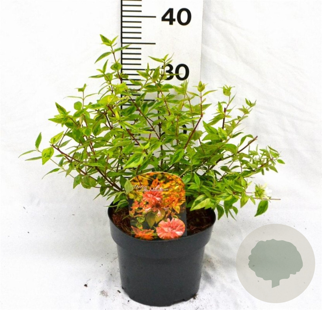 | Toelichting | Abelia is een prachtige heester met roze bloemen en bontgekleurd blad in groen en geel. Bloeit van juni tot september en gedijt goed in zon en halfschaduw op lichte klei, neutrale grond of goede tuingrond. |