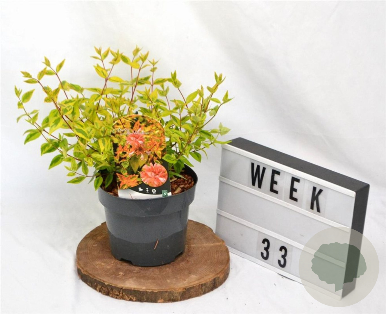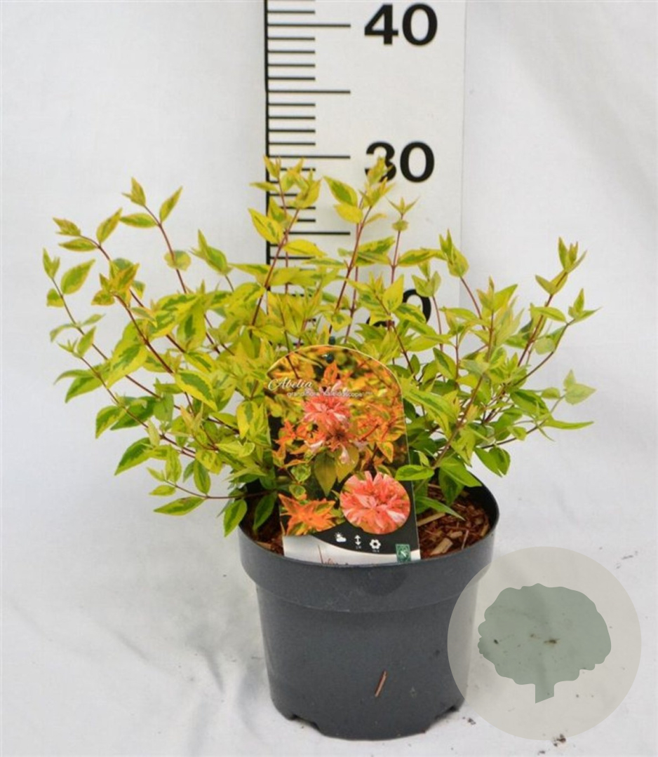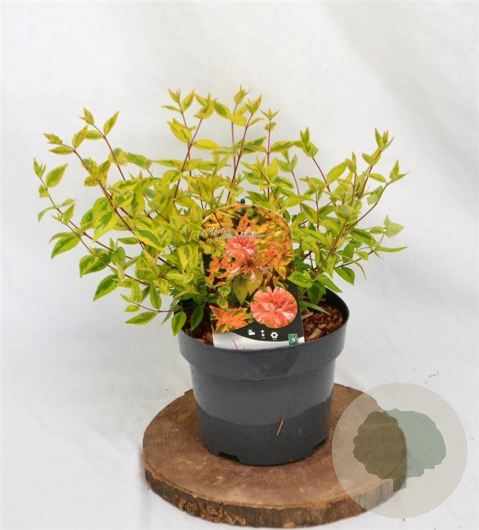 | Toelichting | Abelia is een prachtige heester met roze bloemen en bontgekleurd blad in groen en geel. Bloeit van juni tot september en gedijt goed in zon en halfschaduw op lichte klei, neutrale grond of goede tuingrond. |