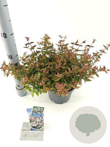 | Toelichting | Abelia is een prachtige heester met roze bloemen en groen blad. Deze plant bloeit van juni tot september en gedijt goed in zon en halfschaduw op lichte klei, zure of humusrijke grond. |