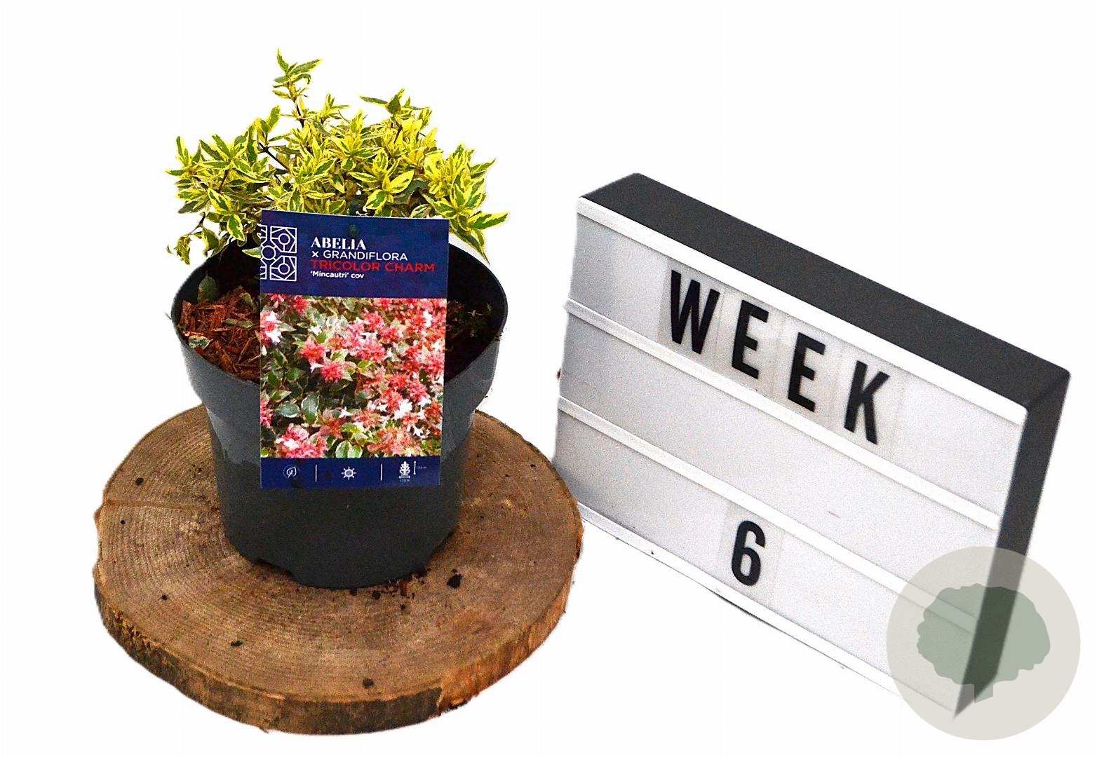 | Toelichting | Abelia is een prachtige struik met groen blad en roze bloemen. Bloeit van juni tot september en gedijt goed in zon en halfschaduw op neutrale, voedselrijke grond. Perfect voor een kleurrijke tuin! |