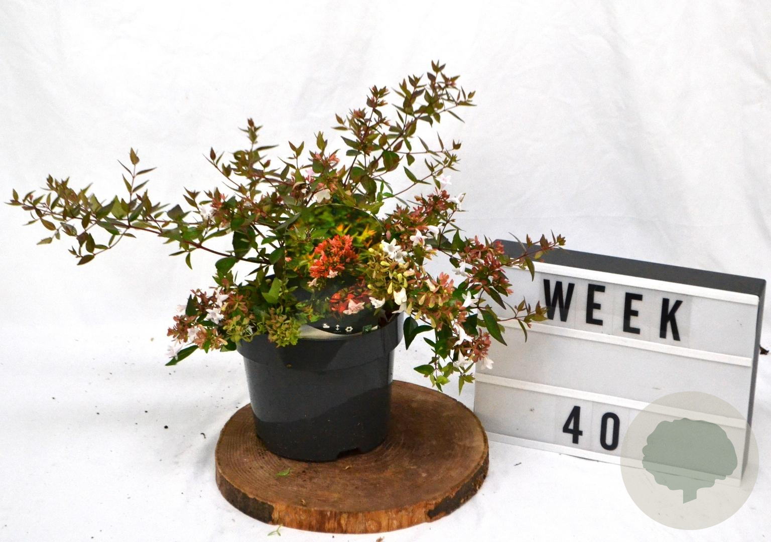 | Toelichting | Abelia is een prachtige heester met roze bloemen en groen blad. Deze plant bloeit van juni tot september en gedijt goed in zon en halfschaduw op lichte klei, neutrale grond of goede tuingrond. |