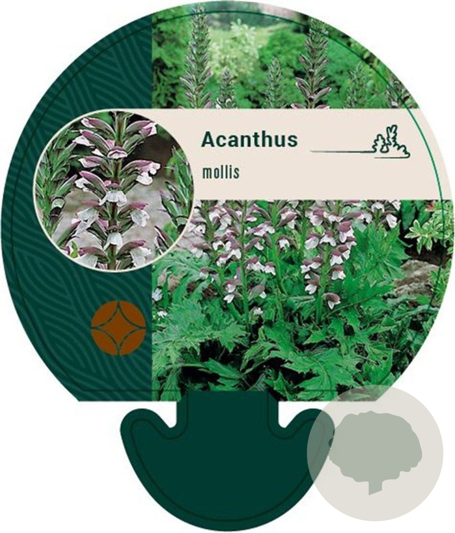 | Toelichting | Acanthus mollis, ook wel bekend als Bears Breeches, is een prachtige vaste plant met paarse en witte bloemen. Deze plant bloeit van juni tot augustus en gedijt goed in zonnige tot halfschaduwrijke plekken met lichte klei, neutrale of voedselrijke grond. De volwassen hoogte is tussen de 100 en 150 cm. |