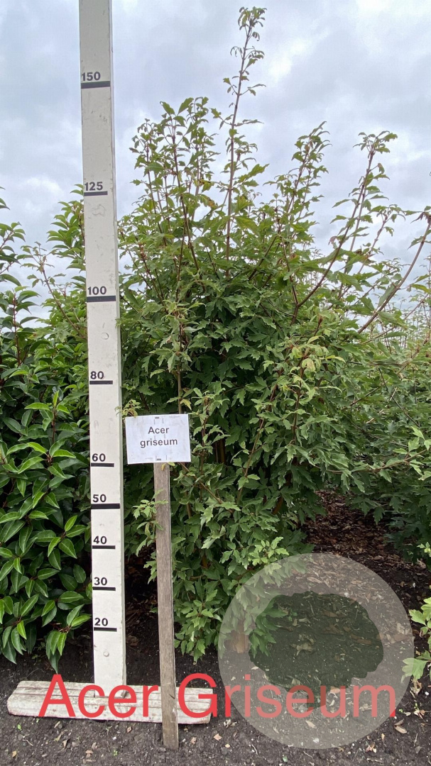| Toelichting | De Acer griseum, ook wel bekend als de Papieresdoorn, is een prachtige sierlijke boom met groen blad en gele bloemen in april - mei. Deze boom gedijt goed in zon en halfschaduw op zandgrond, lichte klei of neutrale grond. Bereikt een hoogte van 600 cm. |