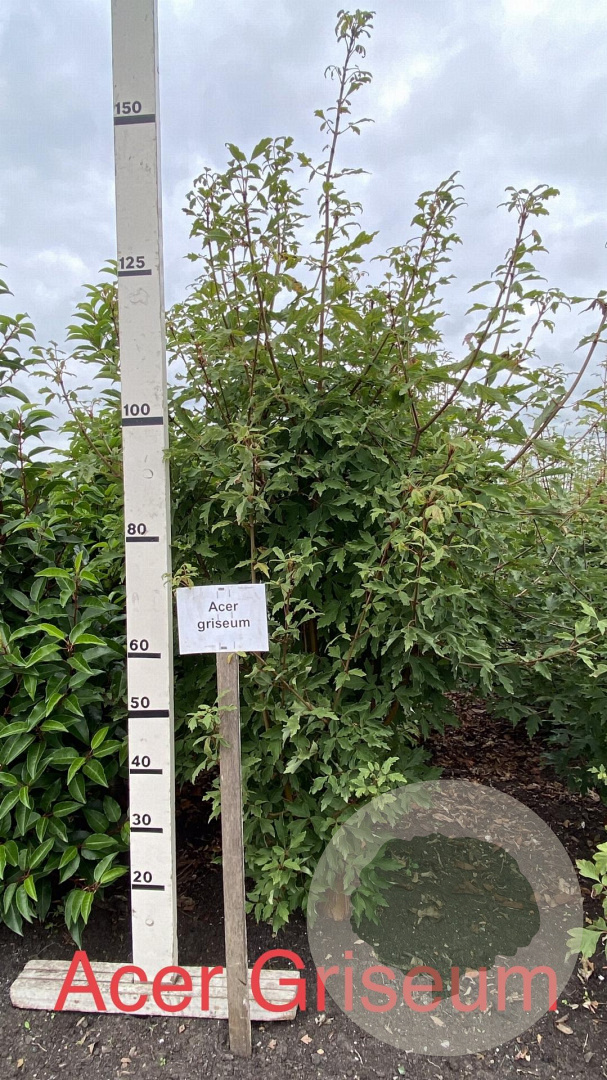 | Toelichting | De Acer griseum, ook wel bekend als de Papieresdoorn, is een prachtige sierlijke boom met groen blad en gele bloemen in april - mei. Deze boom gedijt goed in zon en halfschaduw op zandgrond, lichte klei of neutrale grond. Bereikt een hoogte van 600 cm. |