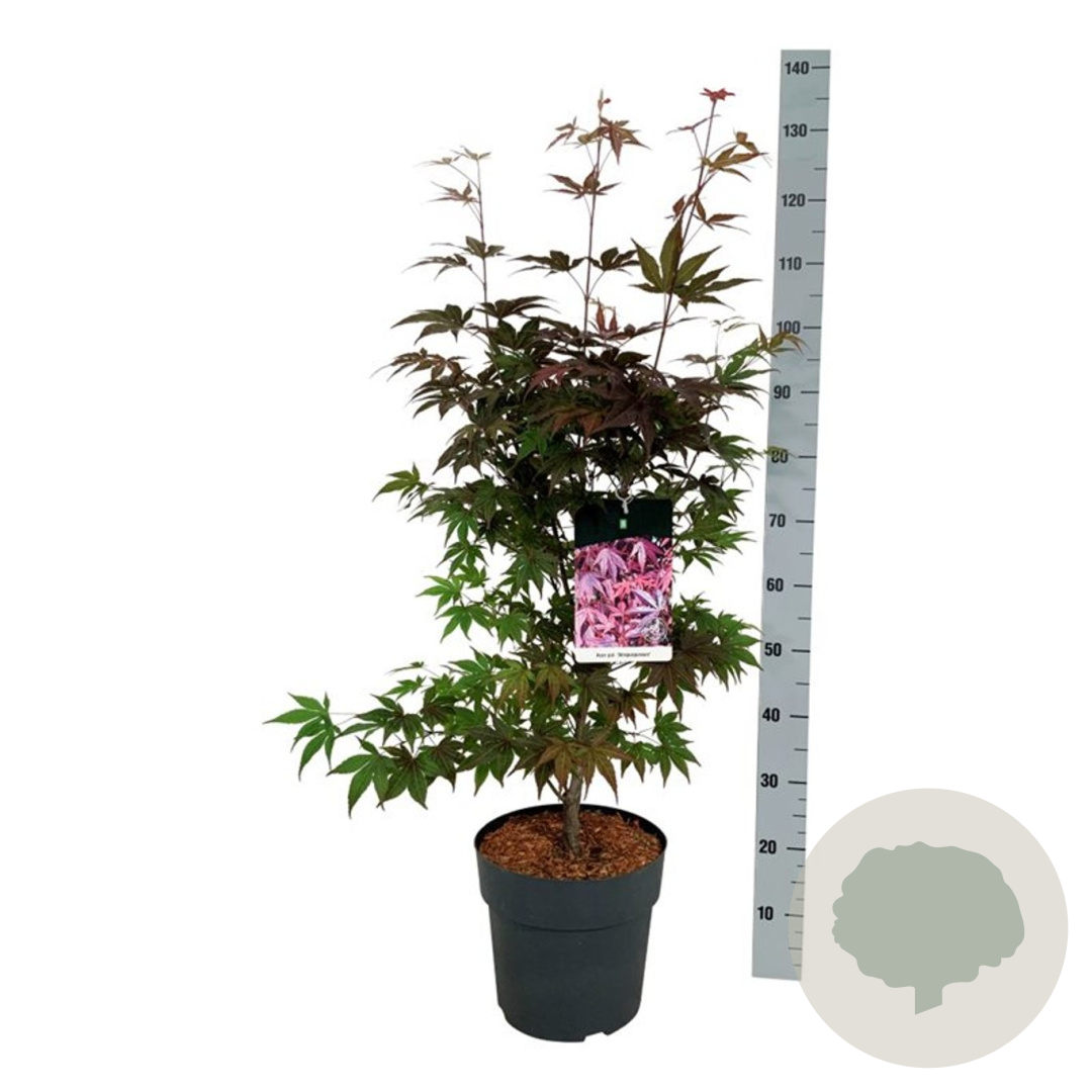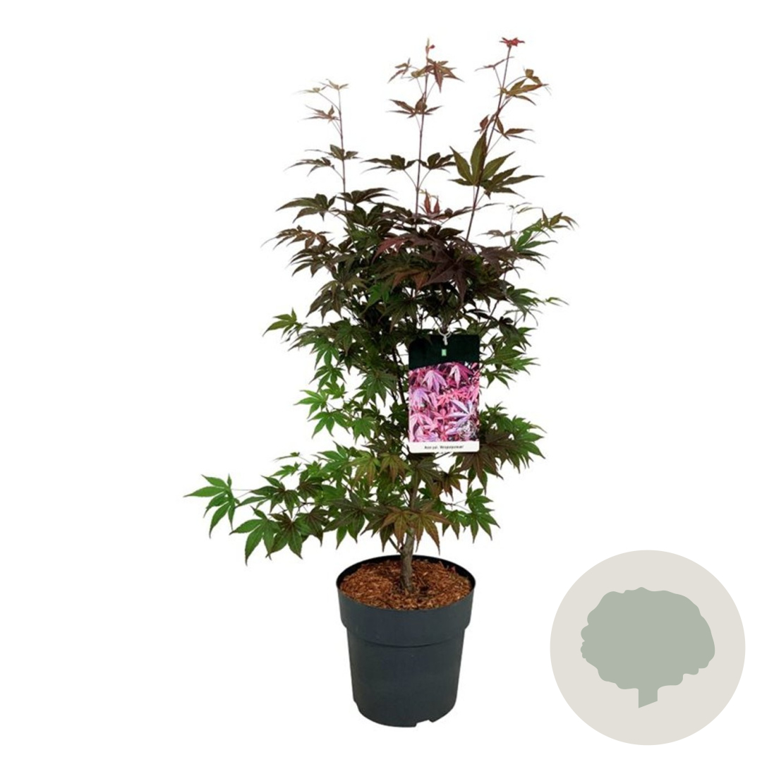 | Toelichting | De Rode esdoorn (Acer pal. 'Atropurpureum') is een prachtige boom met donkerrood blad en geelgroene bloemen in april - mei. Deze boom gedijt goed in zon en halfschaduw op zandgrond, lichte klei of neutrale grond. Bereikt een hoogte van 600 cm. |