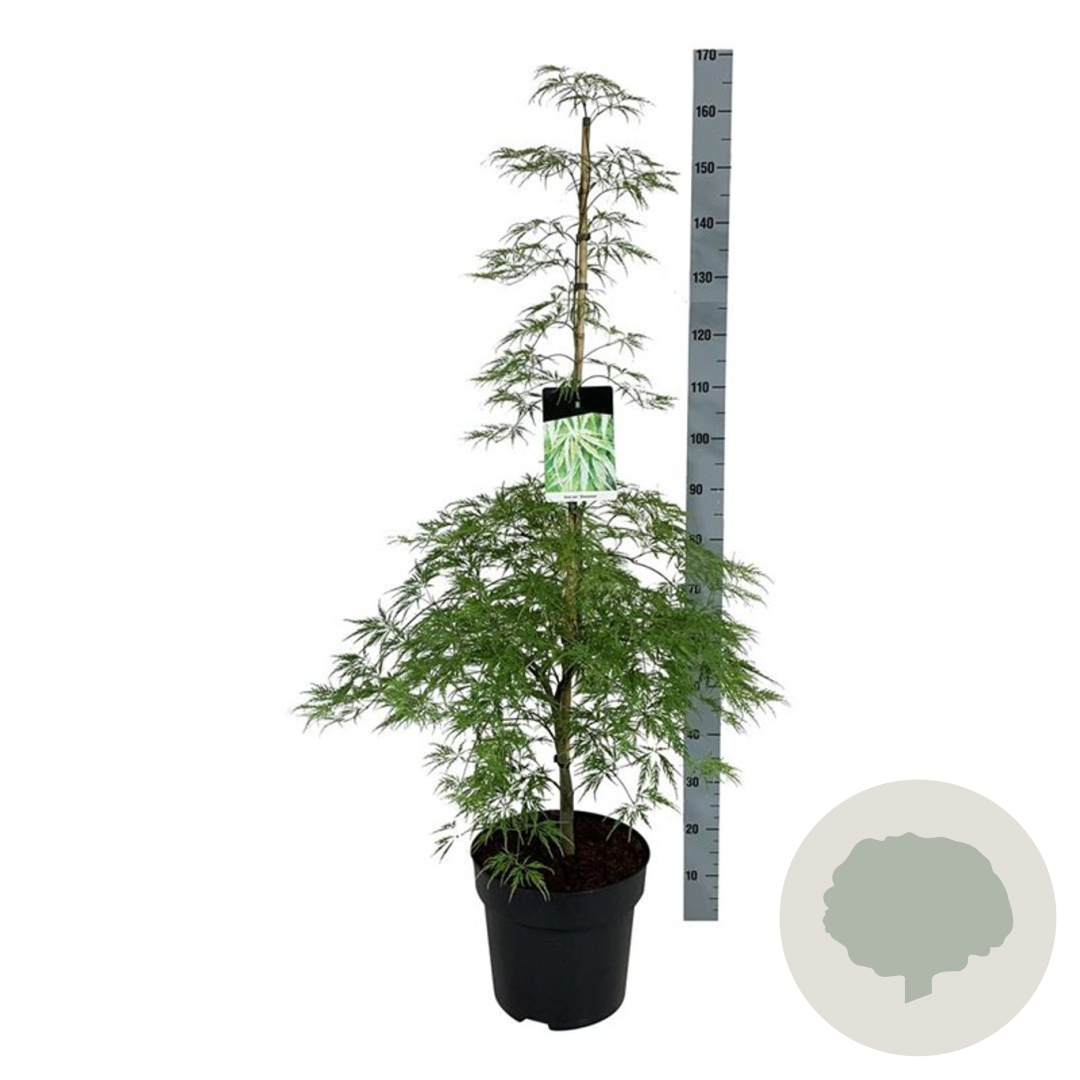 | Toelichting | De Japanse esdoorn (Acer pal. 'Dissectum') is een prachtige sierheester met groen blad en een compacte groeiwijze. Deze plant bloeit in april en mei en gedijt het beste in halfschaduw op zure, humusrijke grond. Bereikt een hoogte van 150 cm. |