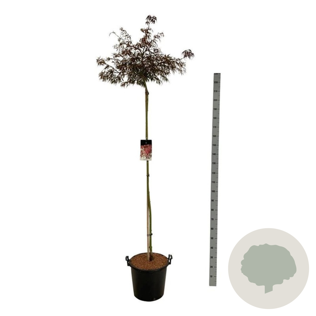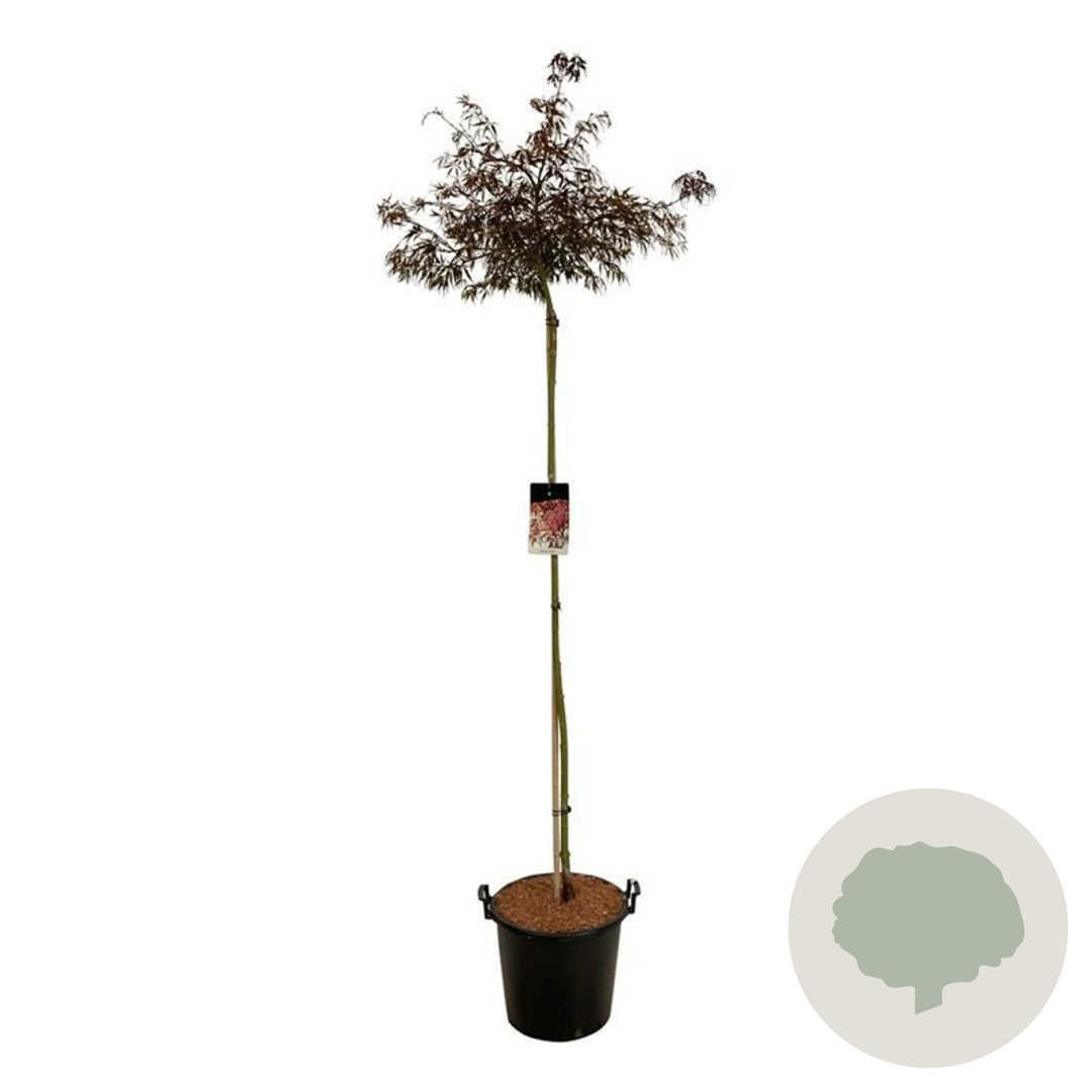| Toelichting | De Esdoorn (Acer pal. 'Garnet') is een prachtige sierboom met donkerrood blad en gele bloemen in april - mei. Deze boom gedijt goed in zon en halfschaduw op zandgrond, lichte klei of neutrale grond. Bereikt een hoogte van 300 cm. |