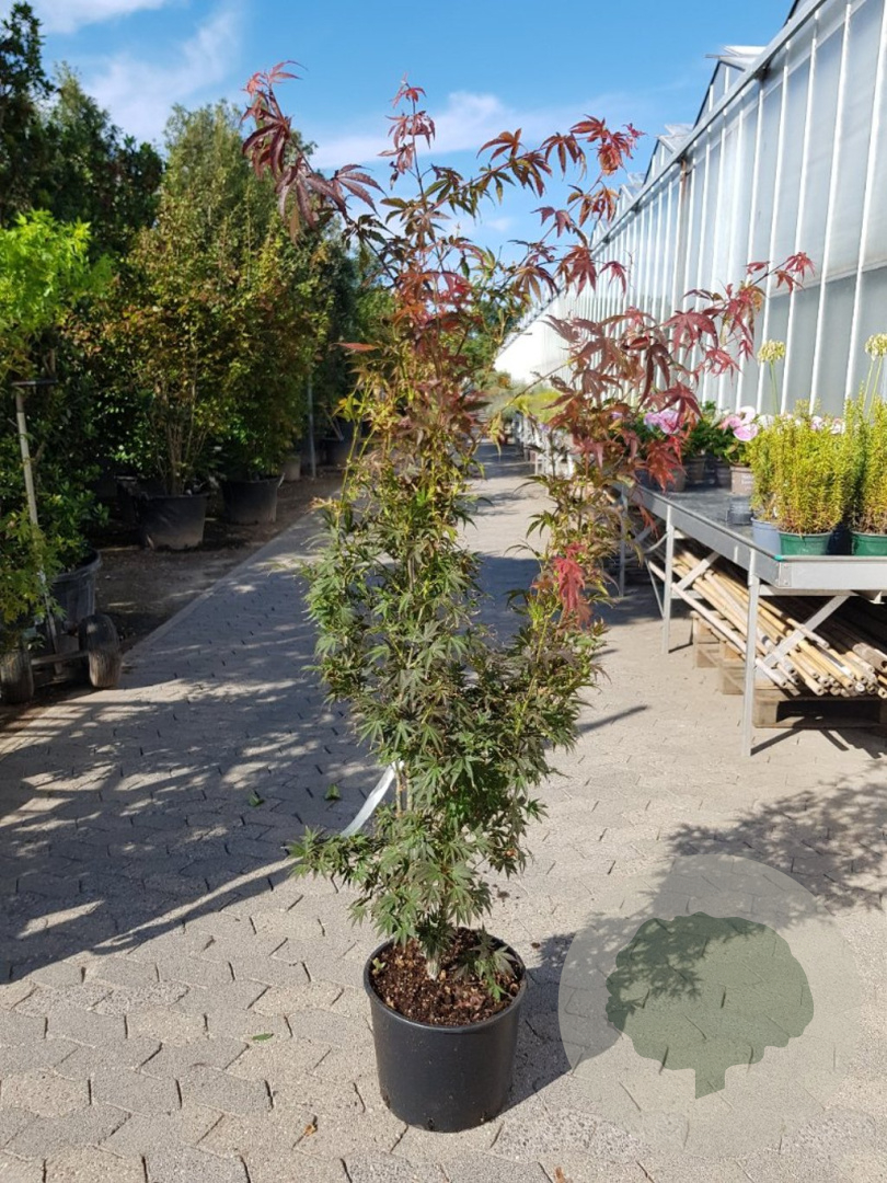 ToelichtingDe Japanse esdoorn (Acer pal. 'Pixie') is een compacte struik met groen blad en gele bloemen in april - mei. Deze niet-inheemse plant gedijt goed in zon en halfschaduw op zandgrond, lichte klei of neutrale grond. Bereikt een hoogte van 150 cm.
