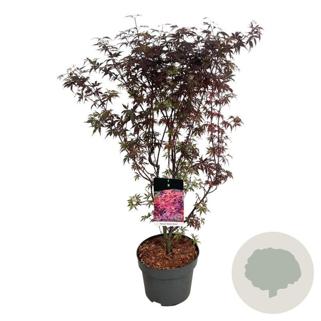 | Toelichting | De Japanse esdoorn (Acer palmatum) 'Skeeter's Broom' is een compacte struik met groen blad en een volwassen hoogte van 150 cm. De bloeiperiode is in april-mei en de plant gedijt goed in zon en halfschaduw op zandgrond, lichte klei of neutrale grond. |