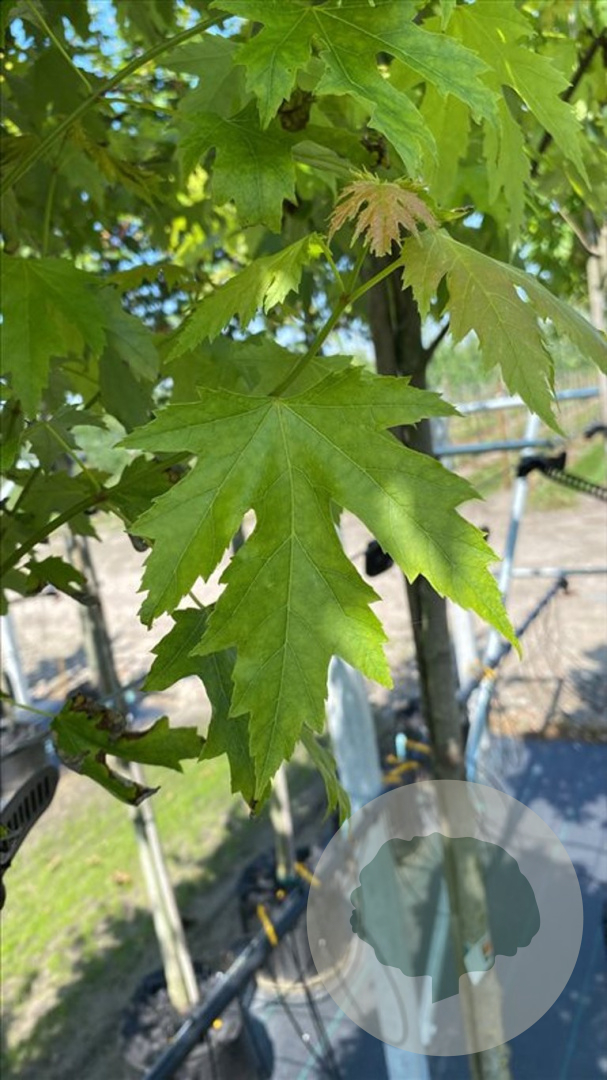 Acer saccharinum 'Pyramidale' (zilveresdoorn) kopen? Hoogstam 12–14 cm, gekweekt in container. Snelgroeiende solitairboom met piramidale vorm, zilverachtig blad en fraaie herfstkleuren.