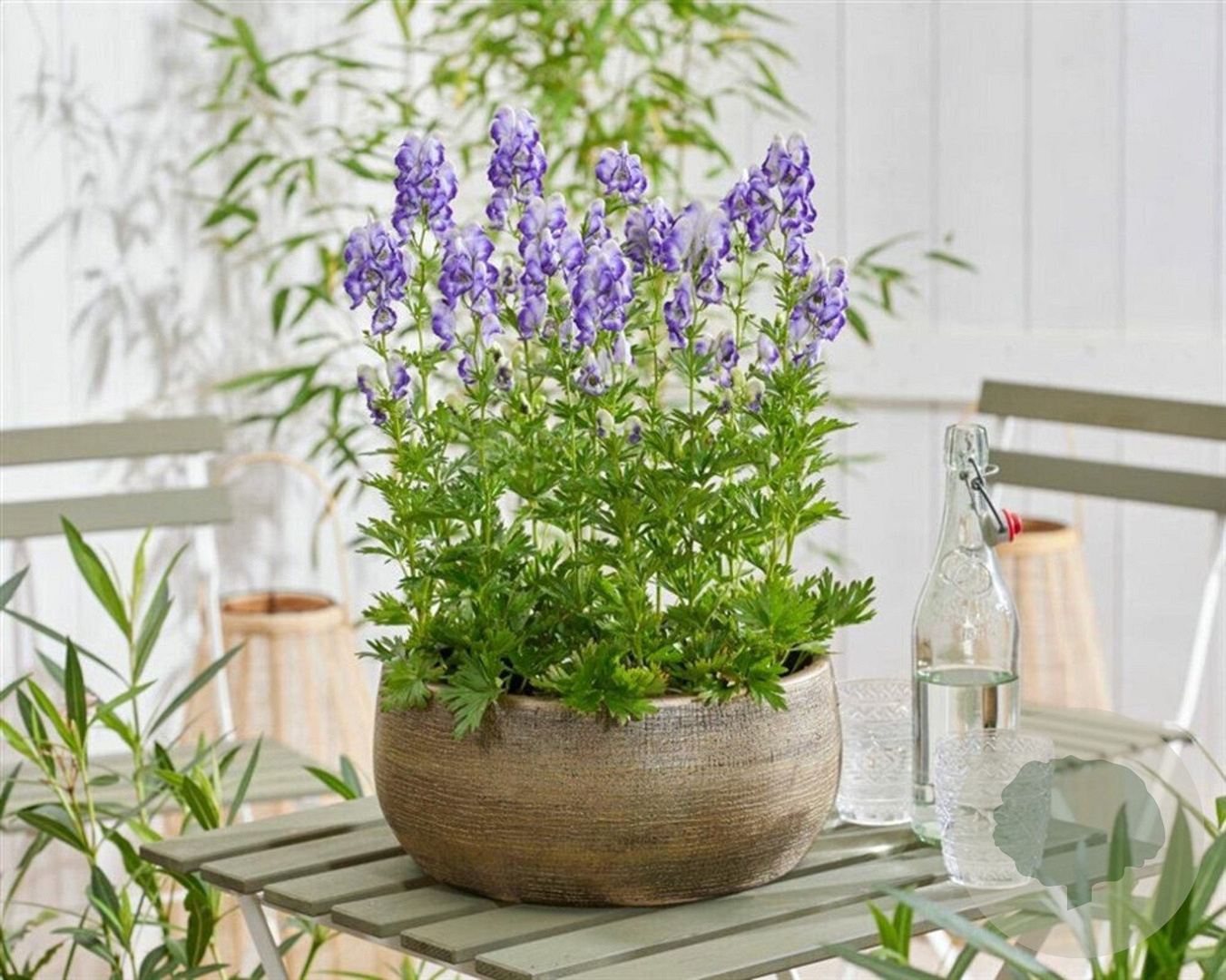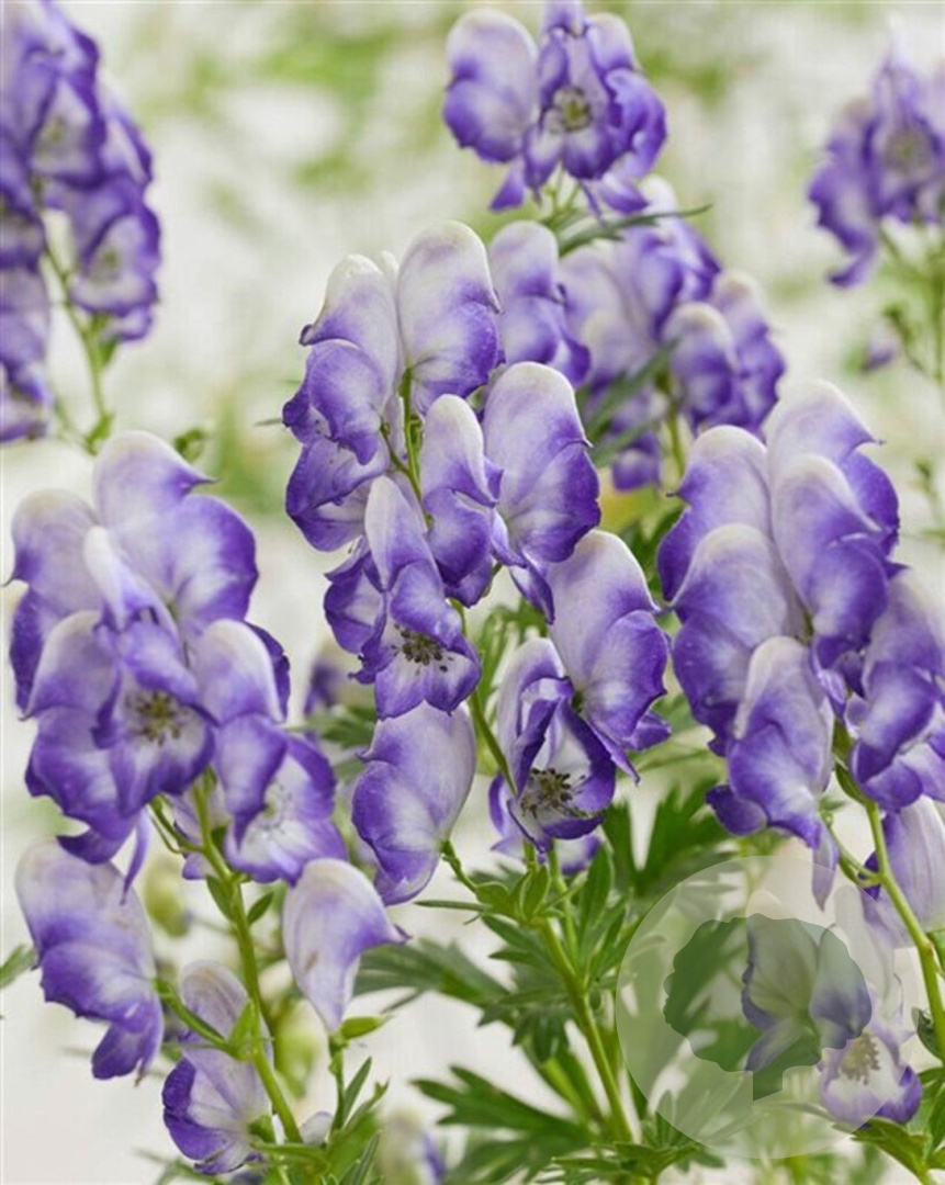 ToelichtingDe Monnikskap (Aconitum camm. 'Bicolor') is een prachtige vaste plant met blauw-witte bloemen die bloeien van juli tot september. De plant wordt 100-150 cm hoog en gedijt goed in de halfschaduw op neutrale, voedselrijke en humusrijke grond.