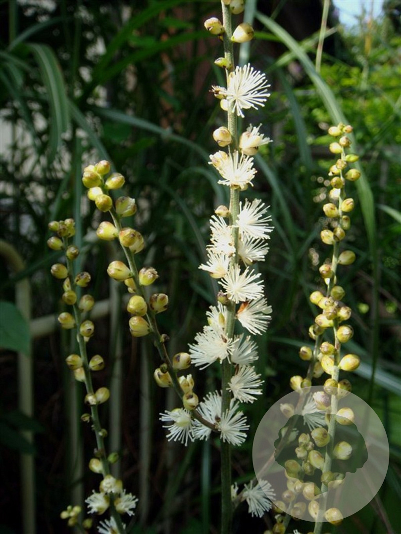 ToelichtingDe Zilverkaars is een prachtige vaste plant met witte bloemen en groen blad. Hij bloeit in de zomermaanden juli en augustus en gedijt het beste in de halfschaduw op zure en humusrijke grond. Bereikt een hoogte van 150 cm.