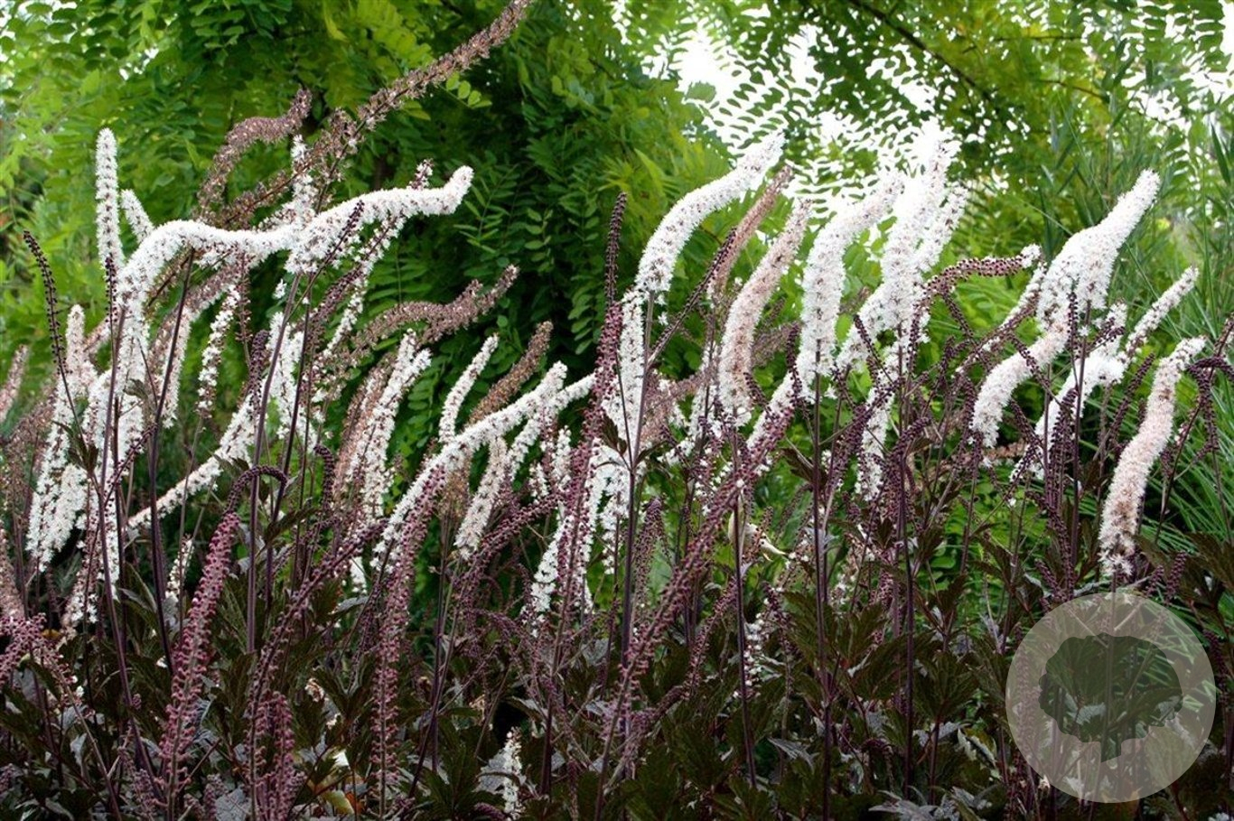 ToelichtingDe Zilverkaars 'Black Negligee' is een prachtige vaste plant met witte bloemen en donkergroen blad. Deze plant bloeit in de zomermaanden juli en augustus en gedijt goed in de halfschaduw op zure en humusrijke grond. Bereikt een hoogte van 150 cm.