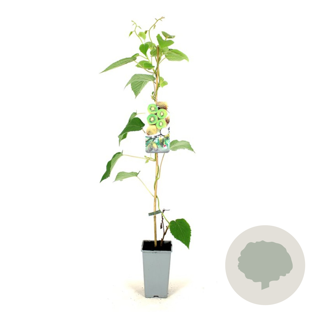| Toelichting | De Kiwi (Actinidia deliciosa 'Boskoop') is een klimplant met groene bladeren en witte bloemen. In juni en juli bloeit deze plant en kan een hoogte bereiken van 400 cm. Zet de Kiwi op een zonnige tot halfschaduwrijke plek in zandgrond, lichte klei of neutrale grond. |
