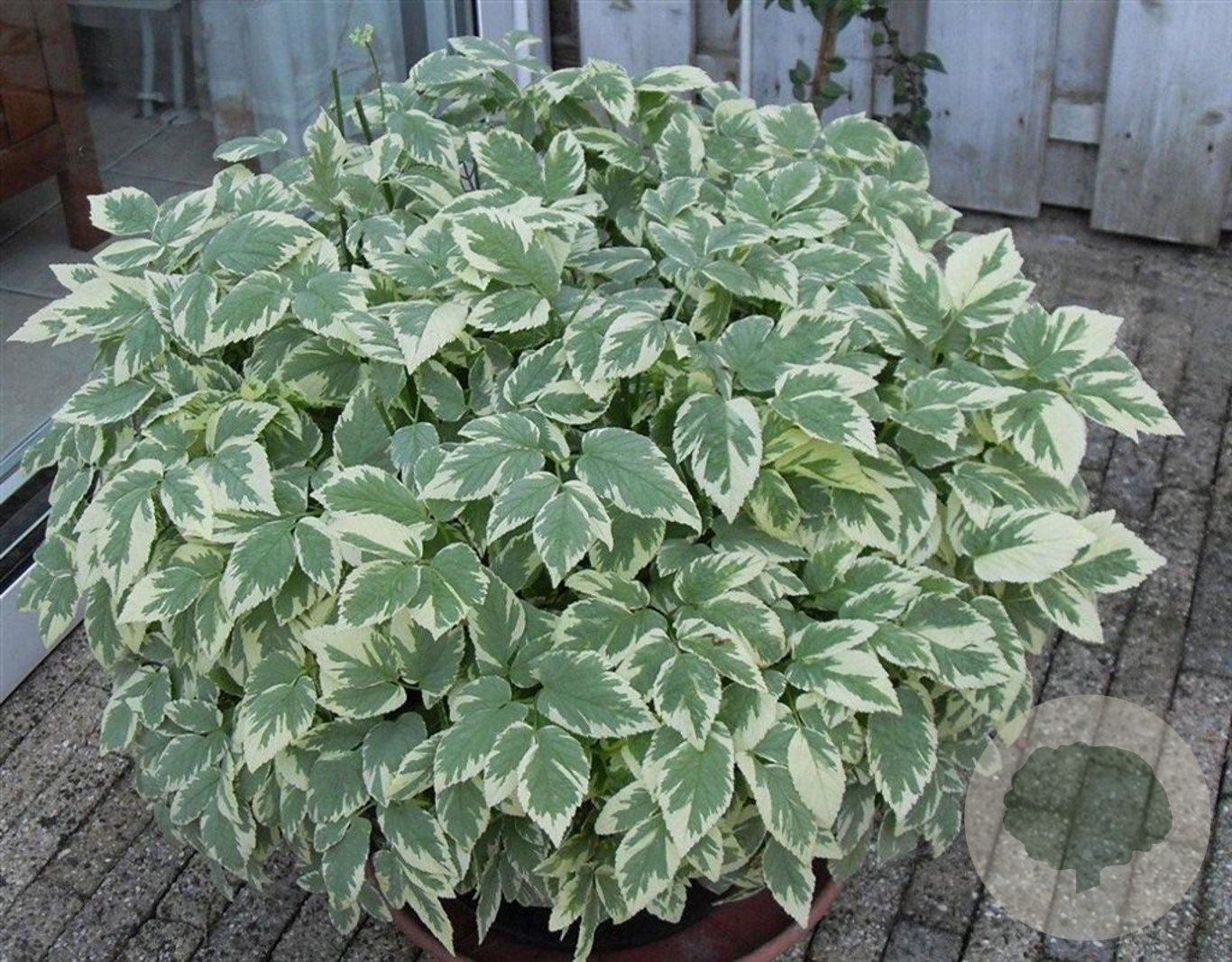 | Toelichting | Zevenblad (Aegopodium podagraria 'Variegatum') is een bodembedekkende plant met groen blad en crèmekleurige accenten. Het bloeit in mei-juni met witte bloemen en gedijt goed in de halfschaduw op voedselrijke, humusrijke grond. |