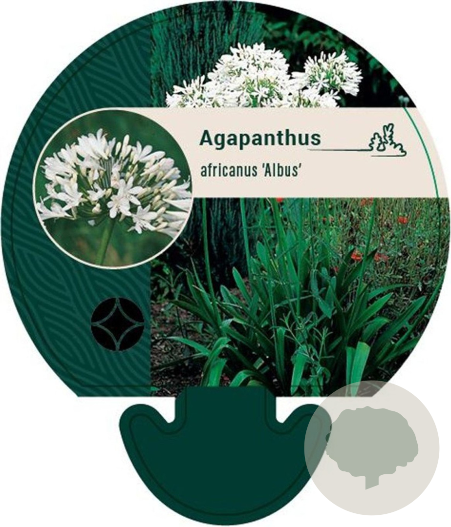 | Toelichting | De Afrikaanse lelie (Agapanthus afr. 'Albus') is een prachtige plant met witte bloemen en groen blad. Deze plant bloeit van juli tot september en staat graag in de zon. Perfect voor lichte klei, neutrale grond of goede tuingrond. |