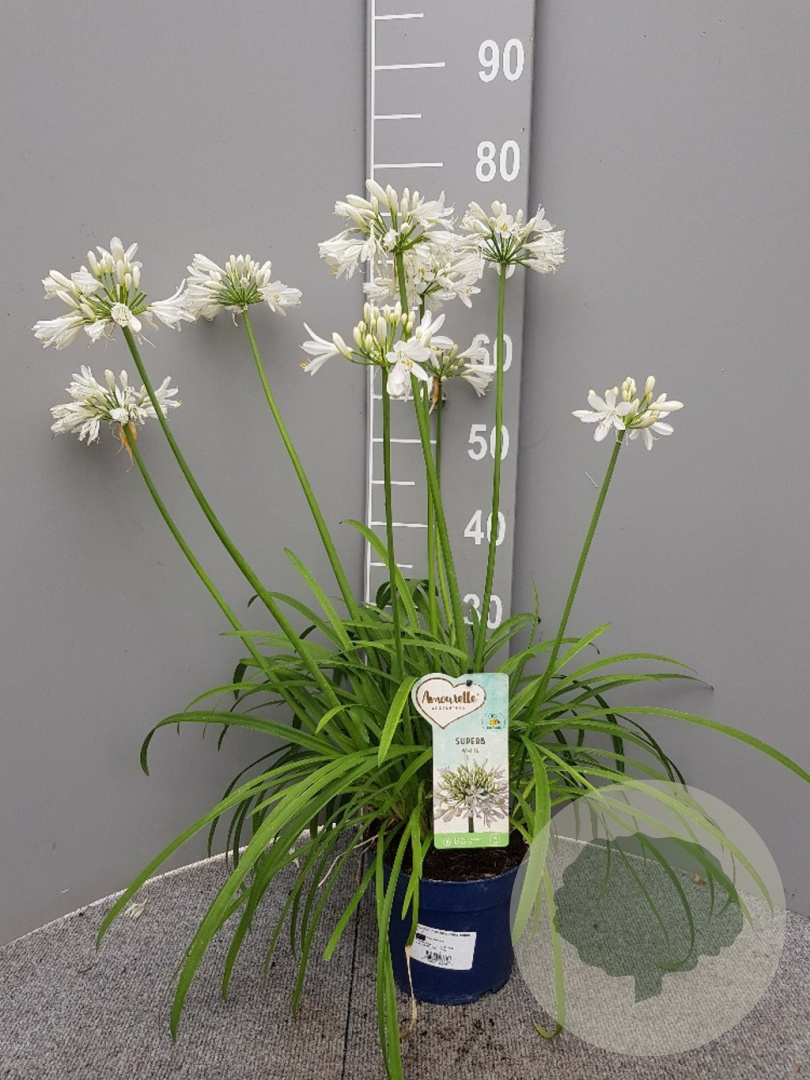 | Toelichting | De Afrikaanse lelie 'Amourette Superb White' is een prachtige plant met witte bloemen die bloeien van juli tot september. Deze plant wordt ongeveer 60-80 cm hoog en gedijt het beste in zonnige standplaatsen met goede tuingrond of humusrijke grond. |