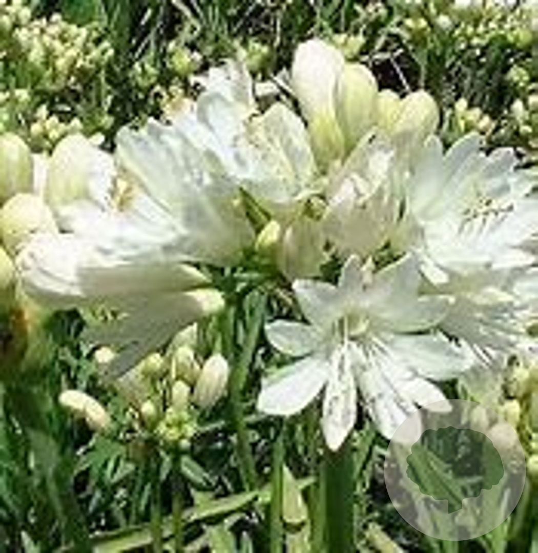 | Toelichting | De Afrikaanse lelie, ook wel bekend als Agapanthus Double Diamond, is een prachtige plant met blauw-witte bloemen die bloeien in de zomermaanden. Deze plant gedijt het beste in de volle zon en heeft goede tuingrond of humusrijke grond nodig. |