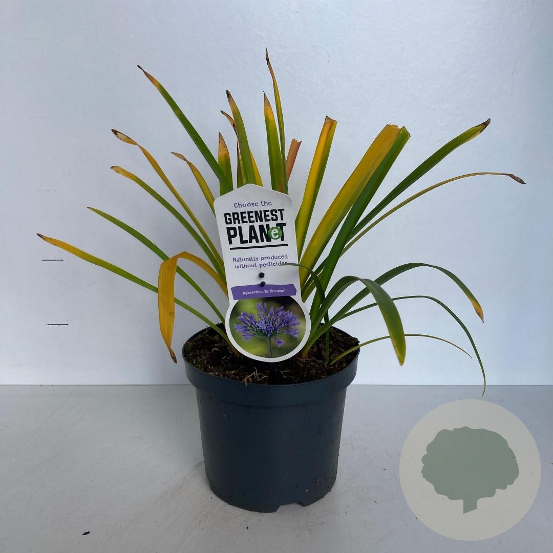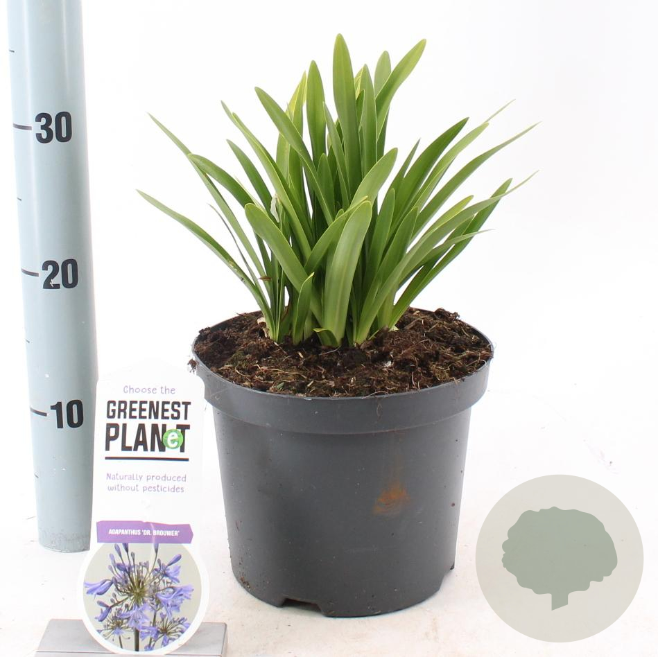 | Toelichting | De Afrikaanse lelie 'Dr Brouwer' is een prachtige plant met blauw-paarse bloemen en groen blad. Deze plant bloeit van juli tot september en gedijt het beste in de volle zon. Perfect voor zandgrond, neutrale grond en goede tuingrond. |
