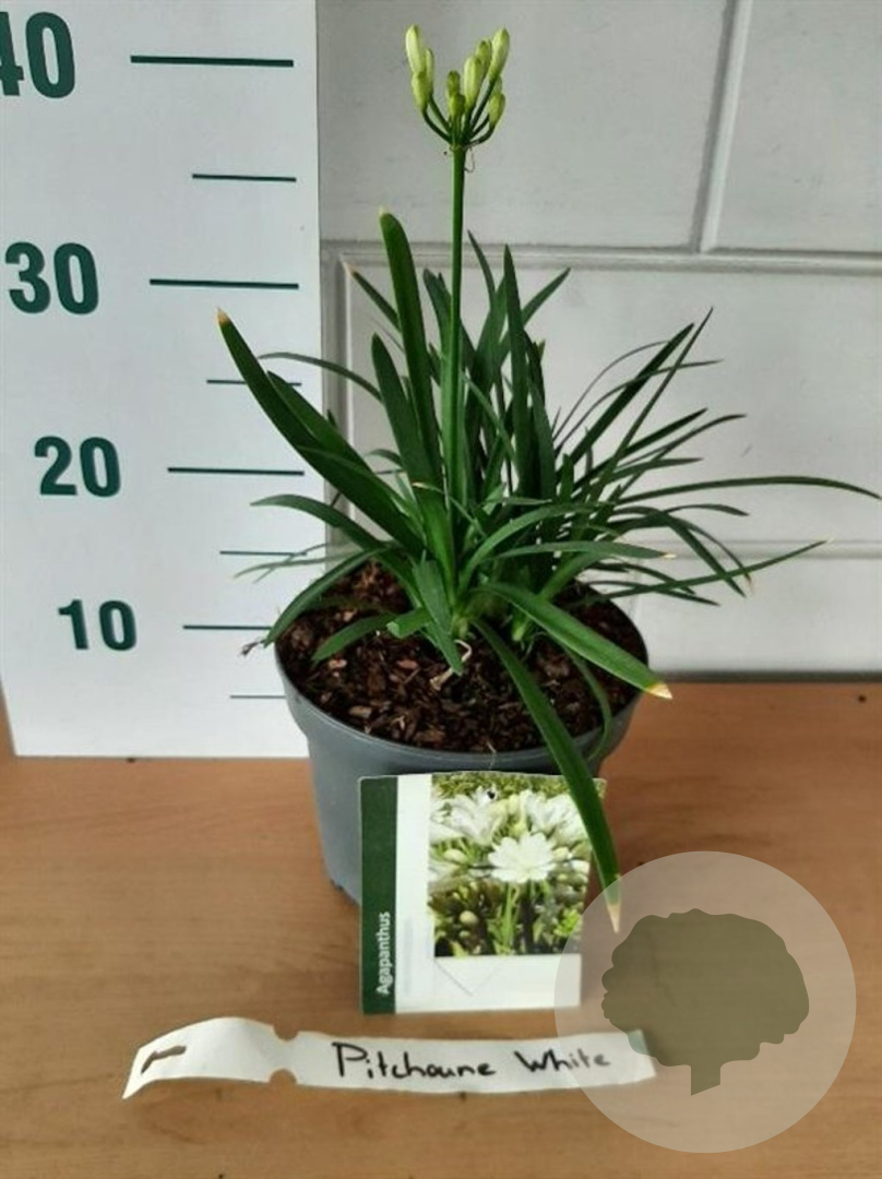 | Toelichting | De Afrikaanse lelie, ook wel bekend als Agapanthus Pitchoune White, bloeit in de zomermaanden met prachtige witte bloemen. Deze plant gedijt het beste in zonnige tot halfschaduwrijke standplaatsen met goede tuingrond en een neutrale tot humusrijke bodem. |
