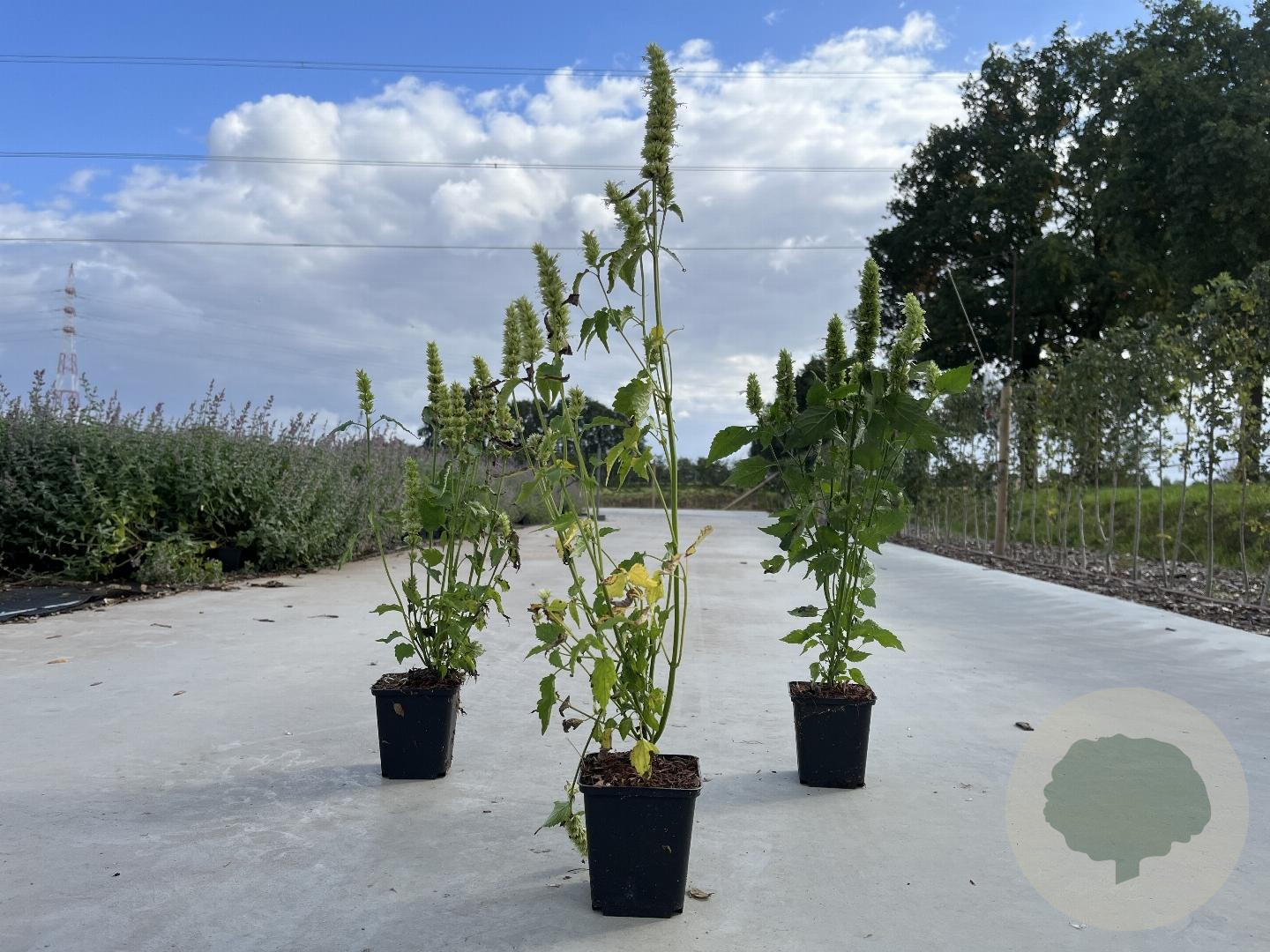 | Toelichting | De Agastache rugosa 'Alabaster', ook wel bekend als Dropplant, bloeit in de zomer met prachtige witte bloemen. Deze vaste plant wordt ongeveer 60-90 cm hoog en gedijt goed in zonnige tot halfschaduwrijke plekken met neutrale tot humusrijke grond. |
