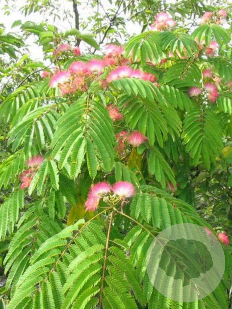 ToelichtingDe Perzische slaapboom (Albizia julibrissin 'Boubri') is een prachtige boom met roze bloemen en groen blad. Deze boom bloeit in de zomermaanden juli en augustus en gedijt het beste in de zon of halfschaduw op lichte klei, neutrale grond, goede tuingrond of humusrijke grond.