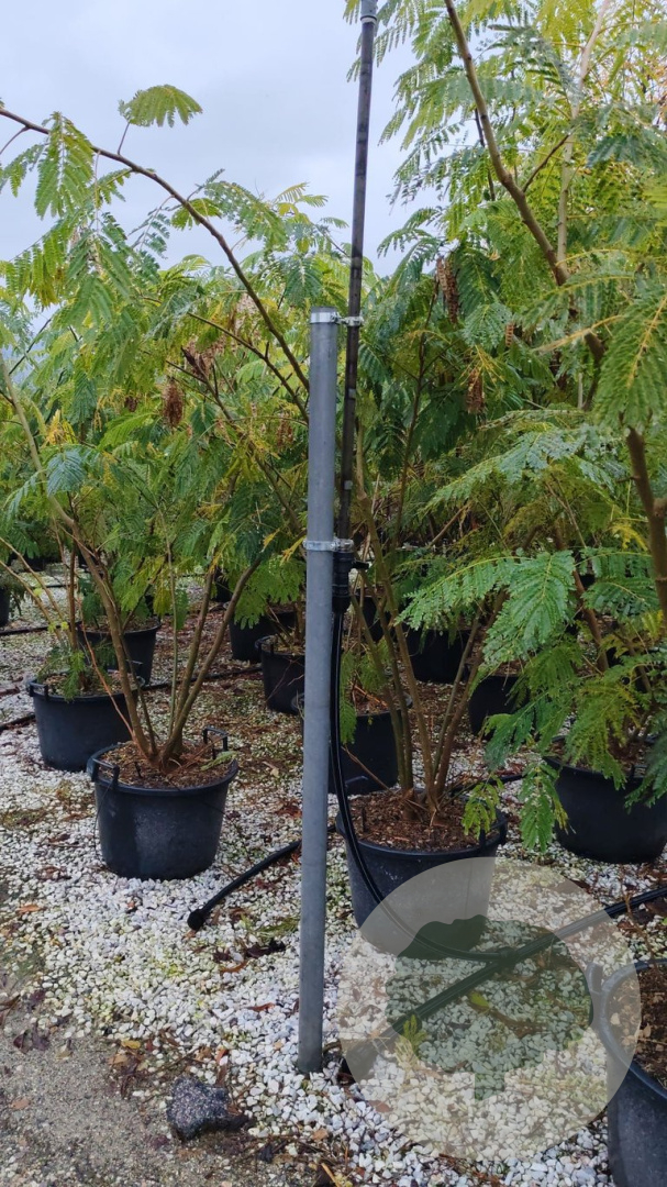 | Toelichting | De Perzische slaapboom, Albizia julibrissin 'Ombrella', is een prachtige boom met witte bloemen en groen blad. Hij bloeit in de zomermaanden juli en augustus en gedijt goed in zonnige tot halfschaduwrijke standplaatsen op lichte klei of neutrale grond. |