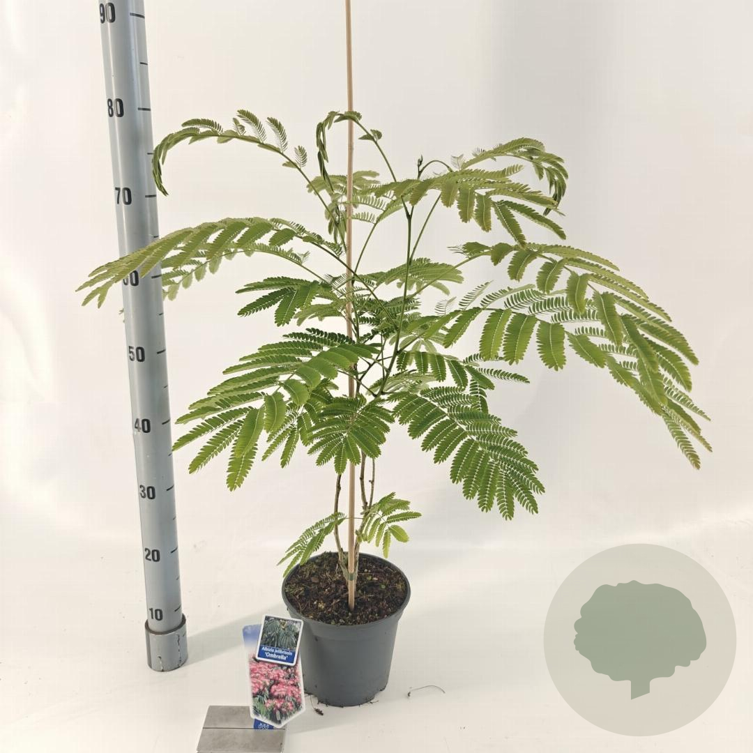 | Toelichting | De Perzische slaapboom, Albizia julibrissin 'Ombrella', is een prachtige boom met witte bloemen en groen blad. Hij bloeit in de zomermaanden juli en augustus en gedijt goed in zonnige tot halfschaduwrijke standplaatsen op lichte klei of neutrale grond. |