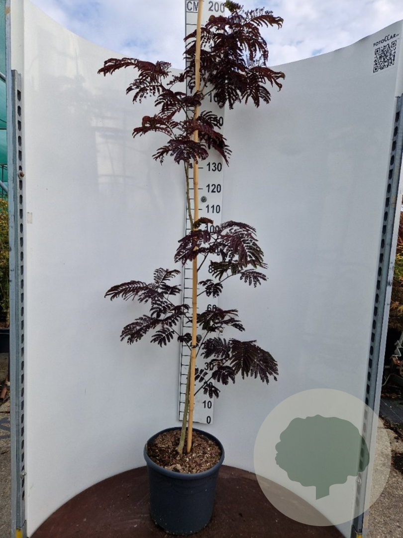 | Toelichting | De Perzische slaapboom, Albizia julibrissin 'Summer Chocolate', is een prachtige boom met donkergroen blad en witte bloemen in de zomer. Deze boom kan een hoogte bereiken van 600 cm en gedijt goed in zon en halfschaduw op neutrale, goede tuingrond met humus. |