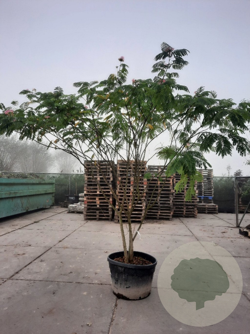 | Toelichting | De Perzische slaapboom (Albizia julibrissin) is een prachtige boom met roze bloemen en groen blad. Hij bloeit in de zomermaanden juli en augustus en staat graag in de zon op zandgrond, lichte klei of neutrale grond. |