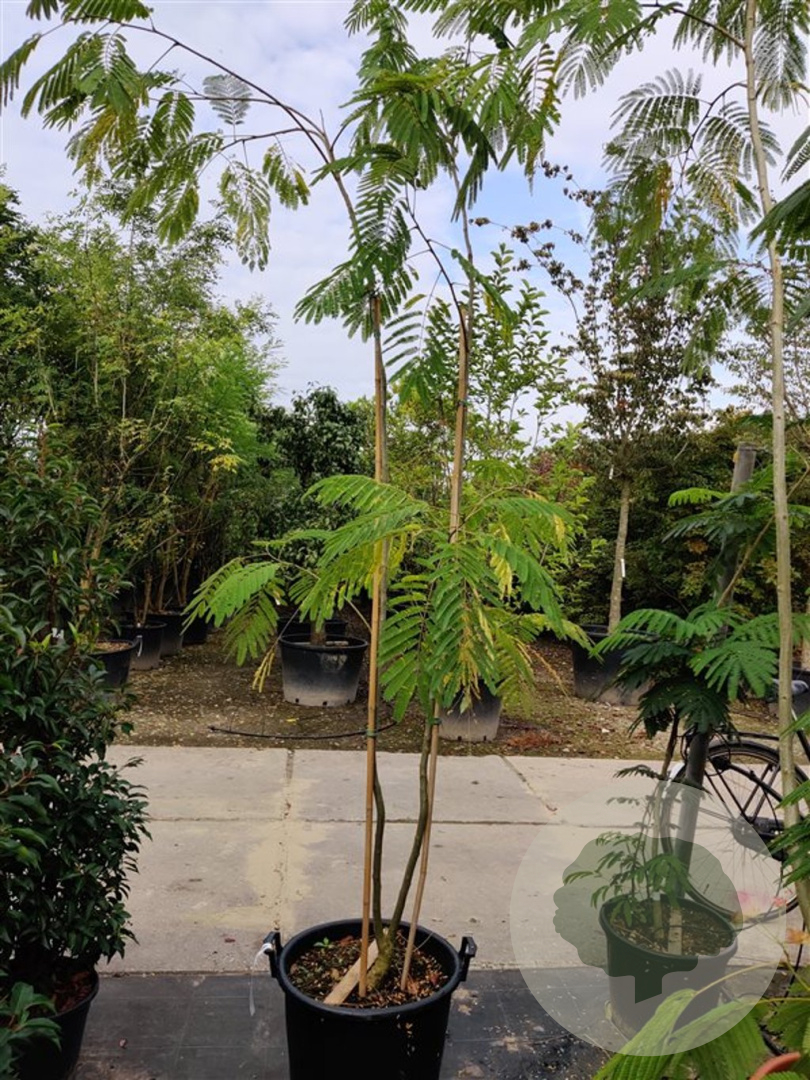 | Toelichting | De Perzische slaapboom (Albizia julibrissin) is een prachtige boom met roze bloemen en groen blad. Hij bloeit in de zomermaanden juli en augustus en staat graag in de zon op zandgrond, lichte klei of neutrale grond. |
