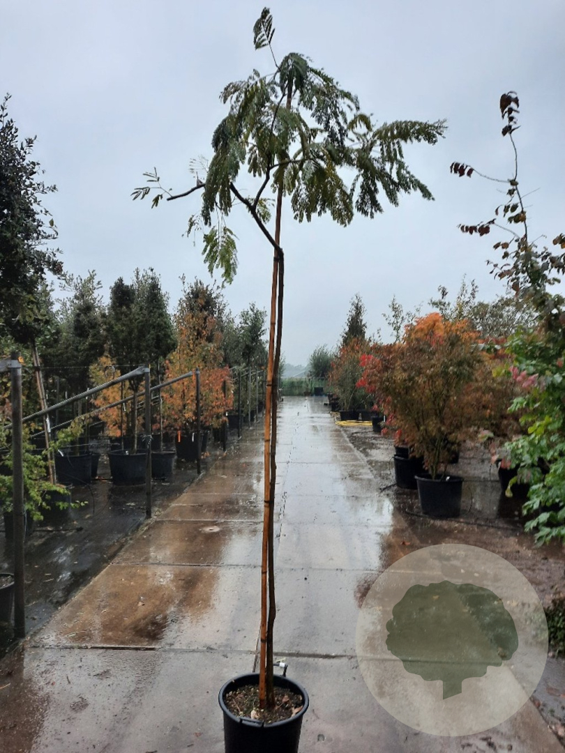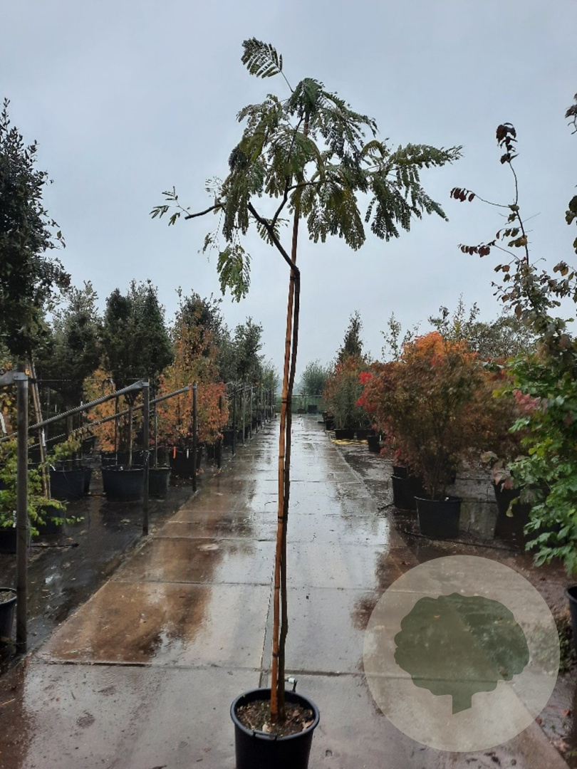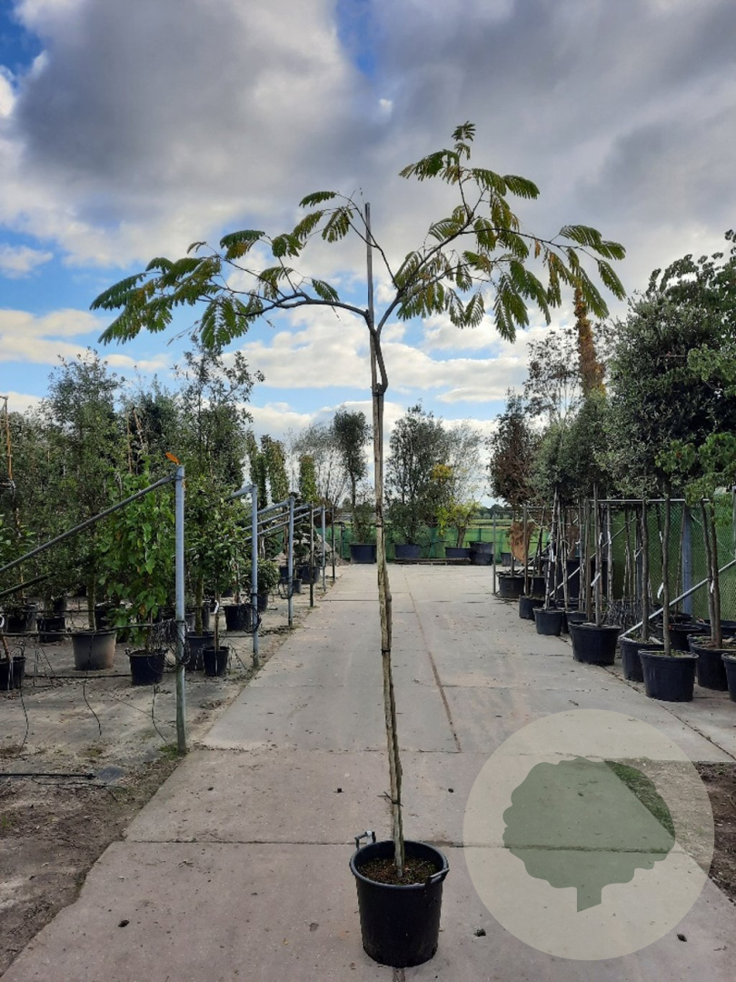 | Toelichting | De Perzische slaapboom (Albizia julibrissin) is een prachtige boom met roze bloemen en groen blad. Hij bloeit in de zomermaanden juli en augustus en staat graag in de zon op zandgrond, lichte klei of neutrale grond. |
