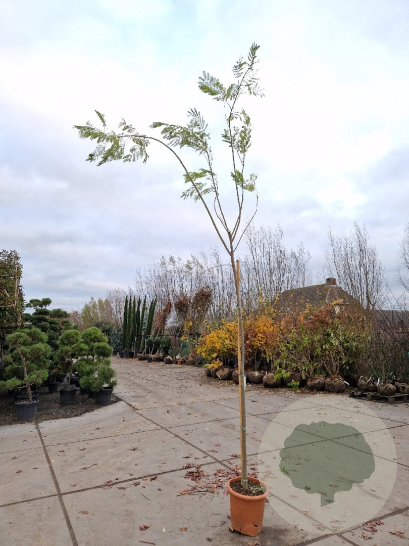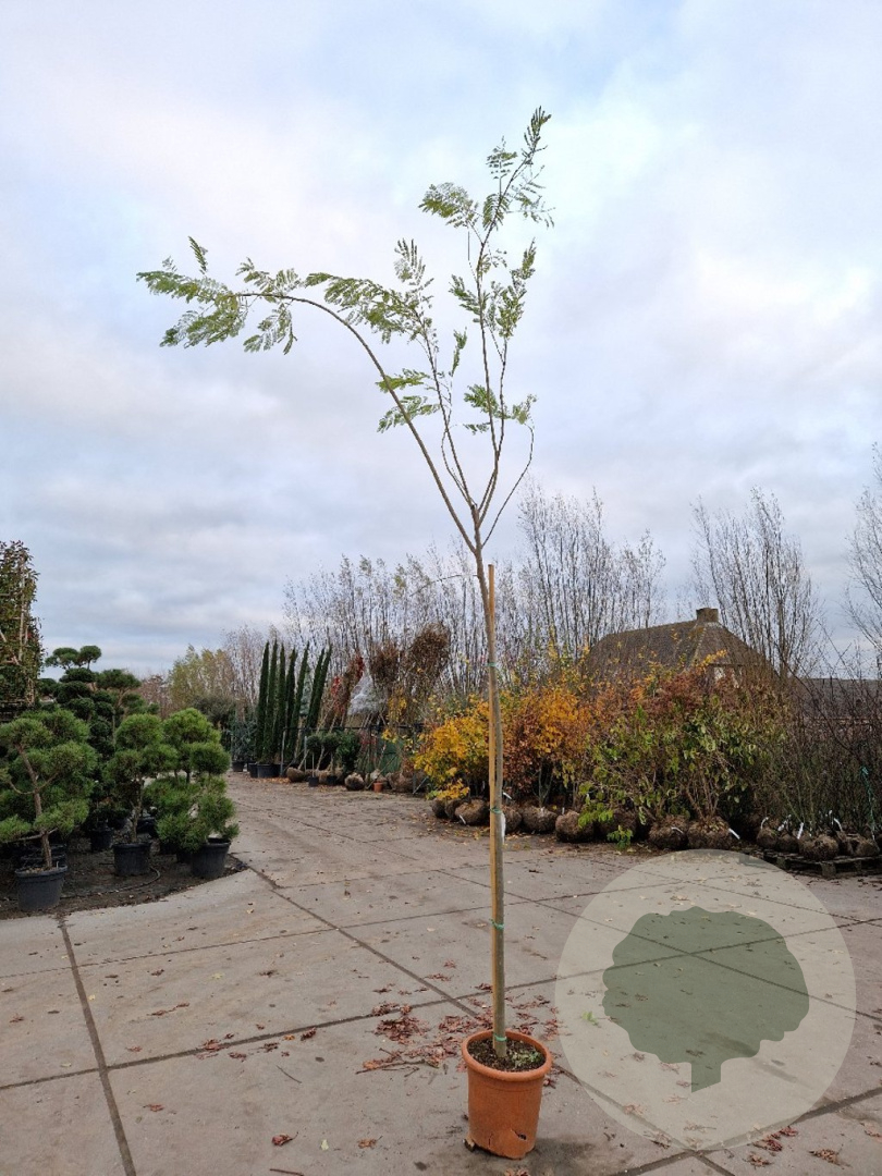 | Toelichting | De Perzische slaapboom (Albizia julibrissin) is een prachtige boom met roze bloemen en groen blad. Hij bloeit in de zomermaanden juli en augustus en staat graag in de zon op zandgrond, lichte klei of neutrale grond. |