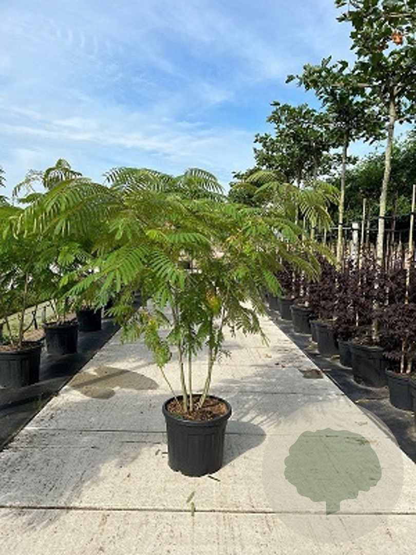 Toelichting | De Perzische slaapboom (Albizia julibrissin) is een prachtige boom met roze bloemen en groen blad. Hij bloeit in de zomermaanden juli en augustus en staat graag in de zon op zandgrond, lichte klei of neutrale grond. |