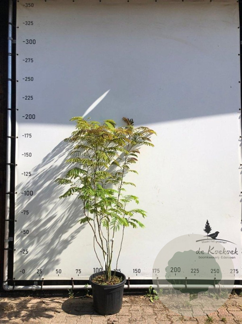 | Toelichting | De Perzische slaapboom (Albizia julibrissin) is een prachtige boom met roze bloemen en groen blad. Hij bloeit in de zomermaanden juli en augustus en staat graag in de zon op zandgrond, lichte klei of neutrale grond. |