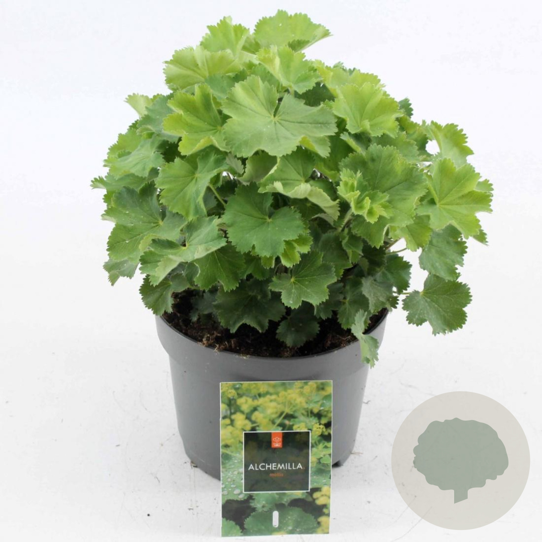 | Toelichting | De Vrouwenmantel is een prachtige borderplant met groene bladeren en gele bloemen. Deze plant bloeit van mei tot juli en gedijt goed in zonnige tot halfschaduwrijke gebieden met lichte klei, neutrale of voedselrijke grond. |