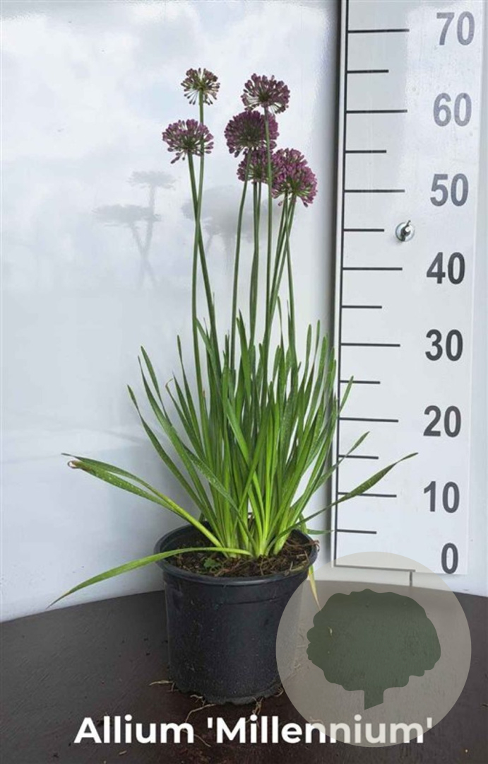 | Toelichting | De Allium 'Millenium' is een prachtige sierui met paarse bloemen die bloeien in juli en augustus. De plant wordt ongeveer 40 cm hoog en gedijt goed in zon en halfschaduw op neutrale, goede tuingrond met humus. |