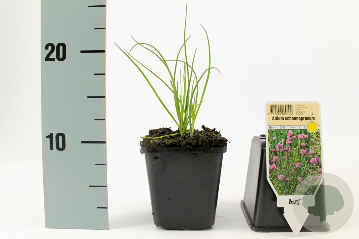 | Toelichting | Bieslook (Allium schoenoprasum) is een aromatische kruidenplant met paarse bloemen die bloeit in mei - juni. Deze plant gedijt goed in zon en halfschaduw op neutrale, voedselrijke en humusrijke grond. Ideaal voor in de kruidentuin! |