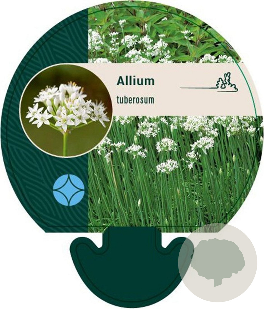 Toelichting | Chinese bieslook (Allium tuberosum) is een smaakvolle en decoratieve vaste plant met witte bloemen en groen blad. Deze plant bloeit in de zomermaanden en gedijt goed in zon en halfschaduw op neutrale, voedselrijke en humusrijke grond. |