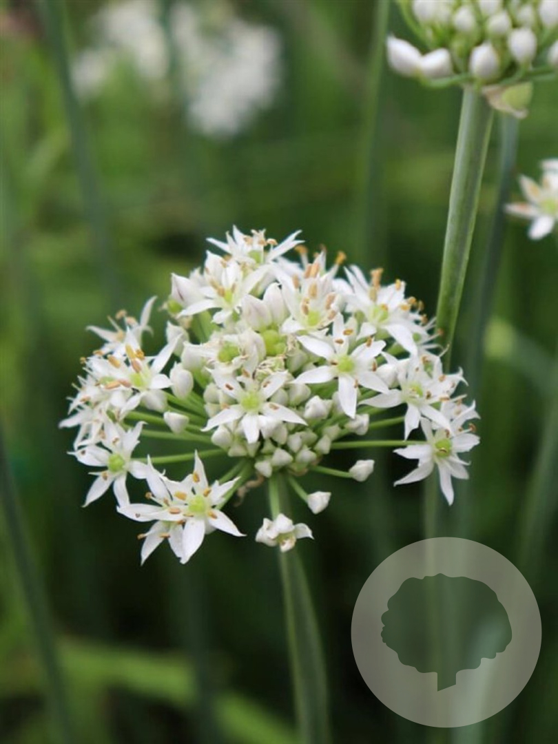 | Toelichting | Chinese bieslook (Allium tuberosum) is een smaakvolle en decoratieve vaste plant met witte bloemen en groen blad. Deze plant bloeit in de zomermaanden en gedijt goed in zon en halfschaduw op neutrale, voedselrijke en humusrijke grond. |