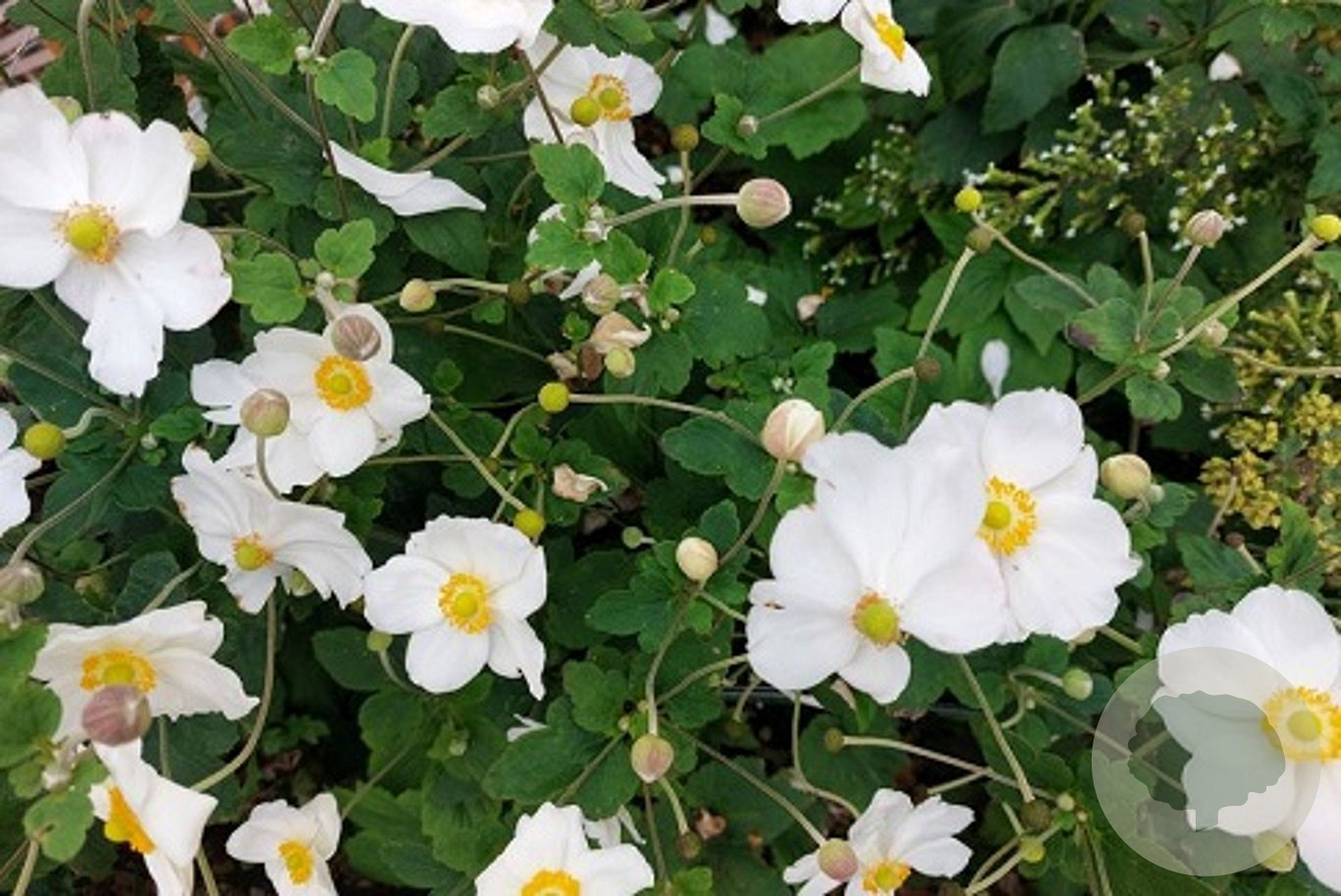 | Toelichting | De Herfstanemoon (Anemone hyb. 'Honorine Jobert') is een prachtige vaste plant met witte bloemen die bloeien van augustus tot oktober. Deze plant wordt ongeveer 120 cm hoog en gedijt goed in zonnige tot halfschaduwrijke plekken met lichte klei, neutrale of humusrijke grond. |