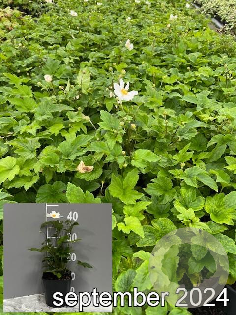 | Toelichting | De Herfstanemoon (Anemone hyb. 'Honorine Jobert') is een prachtige vaste plant met witte bloemen die bloeien van augustus tot oktober. Deze plant wordt ongeveer 120 cm hoog en gedijt goed in zonnige tot halfschaduwrijke plekken met lichte klei, neutrale of humusrijke grond. |
