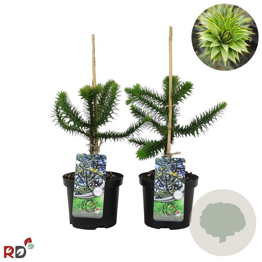 | Toelichting | De Chileense den (Araucaria araucana) is een imposante naaldboom met groene bladeren. Deze boom kan wel 15 meter hoog worden en bloeit in de maanden mei en juni. Plaats de Chileense den op een zonnige standplaats in zandgrond, klei of neutrale grond. |
