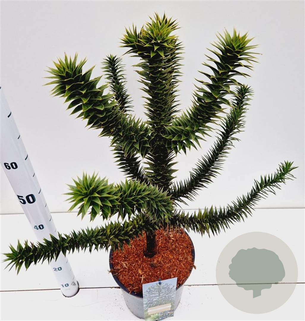 | Toelichting | De Chileense den (Araucaria araucana) is een imposante naaldboom met groene bladeren. Deze boom kan wel 15 meter hoog worden en bloeit in de maanden mei en juni. Plaats de Chileense den op een zonnige standplaats in zandgrond, klei of neutrale grond. |