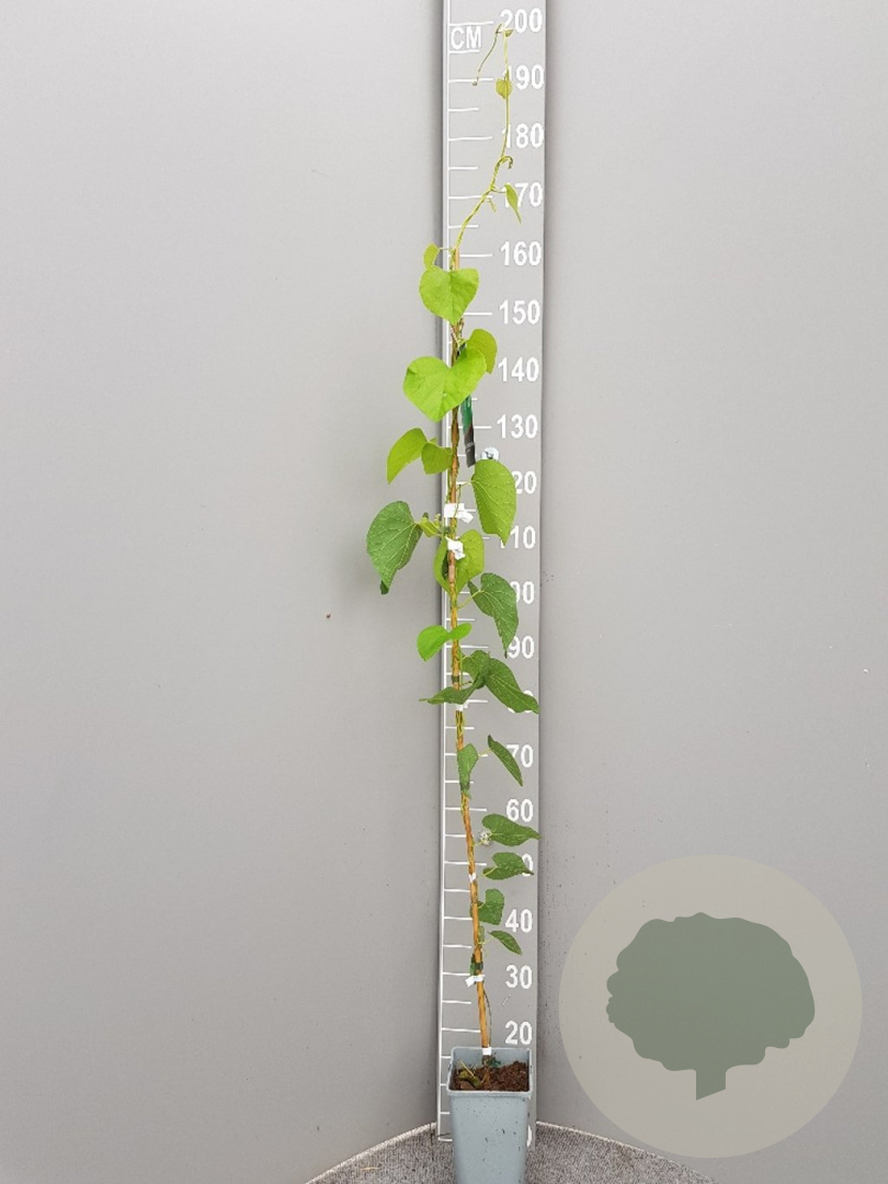 | Toelichting | De Aristolochia macrophylla, ook wel bekend als de Pijpbloem, is een prachtige klimplant met paarse bloemen en groen blad. Deze niet-inheemse plant bloeit in juni en juli en gedijt goed in halfschaduw op lichte klei en humusrijke grond. |