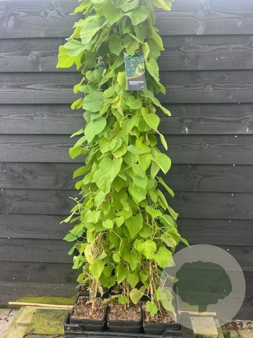 | Toelichting | De Aristolochia macrophylla, ook wel bekend als de Pijpbloem, is een prachtige klimplant met paarse bloemen en groen blad. Deze niet-inheemse plant bloeit in juni en juli en gedijt goed in halfschaduw op lichte klei en humusrijke grond. |
