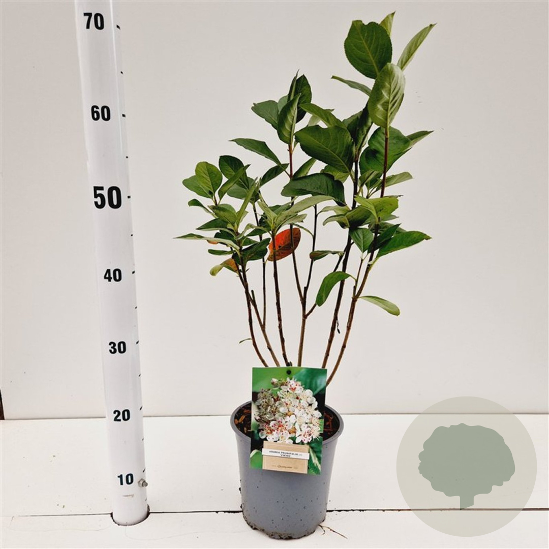 | Toelichting | De Appelbes (Aronia prunifolia 'Viking') is een prachtige struik met witte bloemen in mei-juni. De groene bladeren kleuren in de herfst rood. Deze plant gedijt goed in zon en halfschaduw op zure, voedselarme en humusrijke grond. |